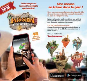 La brochure nous permet d’en savoir un petit peu plus sur Mission Fraispertuis City, l’app’traction 2018 qui nous fera courir cet été dans le parc. Pour rappel, cette application est déjà téléchargeable gratuitement. Une mise à jour aura lieu en avril pour ajouter les nouvelles fonctionnalités du jeu.