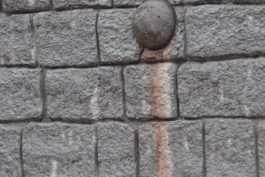 Plusieurs détails ont été sculptés dans les murs qui entourent Hissez-haut, notamment quelques boulets de canons tirés par des pirates.