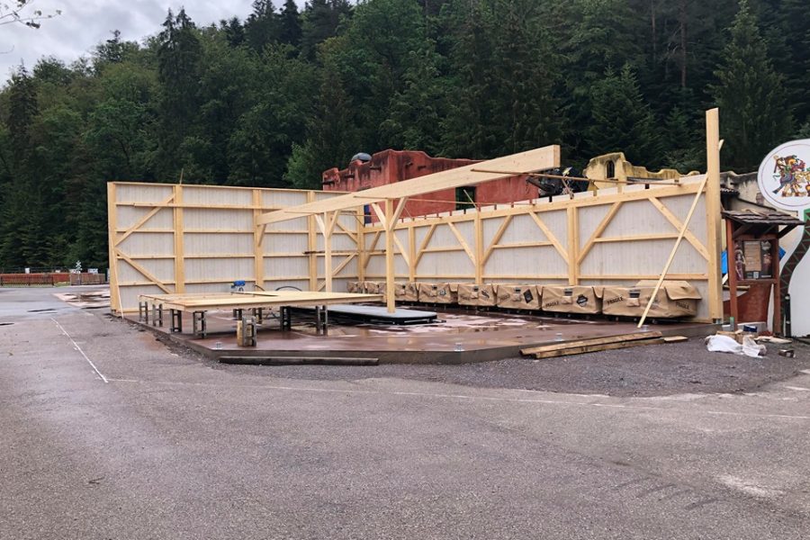 Le bâtiment de la nouvelle attraction Post Office est en cours de montage. L’attraction sera bientôt mise à l’abri.