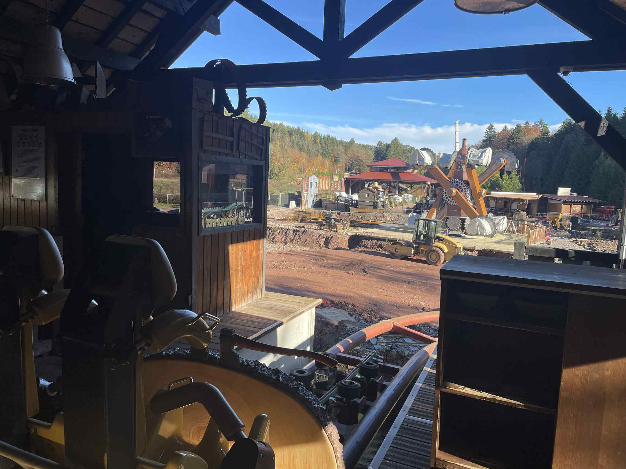 On savait que la file d’attente de Sawmill serait éphémère car elle était collée au hangar qui devait partir et que ce bâtiment abritait le local technique. On a volontairement mis Sawmill dans le tracé pour que le layout passe autour. Le bâtiment faisait peut-être 200m², on a 1000m² autour de Sawmill pour placer ce coaster. Il était impensable de mettre ici autre chose, la place est très restreinte. J’ai lu les propositions sur plusieurs forums, certaines n’étaient clairement pas envisageables dans cet espace. On sait qu’avec ça, on va vers une sensation que nos visiteurs vont apprécier. Il n’y a qu’à voir le nombre d’adultes qu’il y a dans la Ronde des rondins ! Et cette année, j’ai encore changé la réglementation en disant, de grâce, qu’un seul adulte par wagon. La maintenance s’est vu appelée pour venir régler les freins à cause du fait que le train est trop chargé avec deux adultes par wagon. Je me dis qu’un jour, il va falloir découper le wagon pour les sortir. (rires)