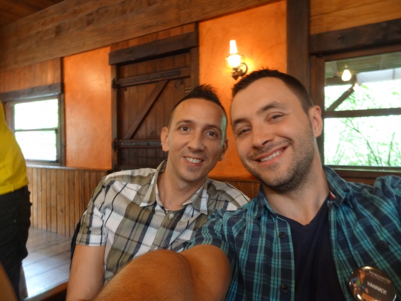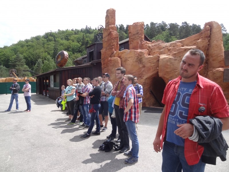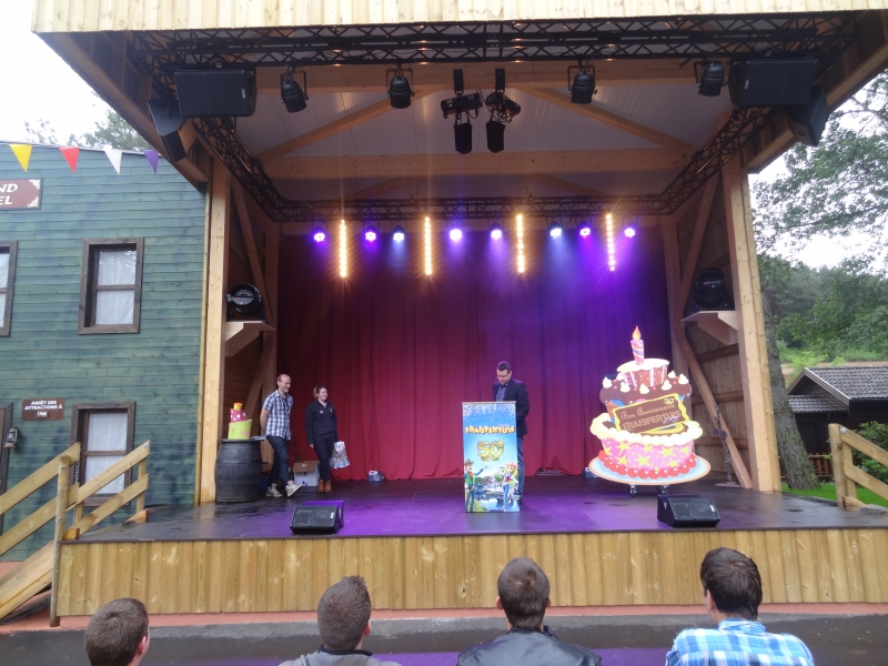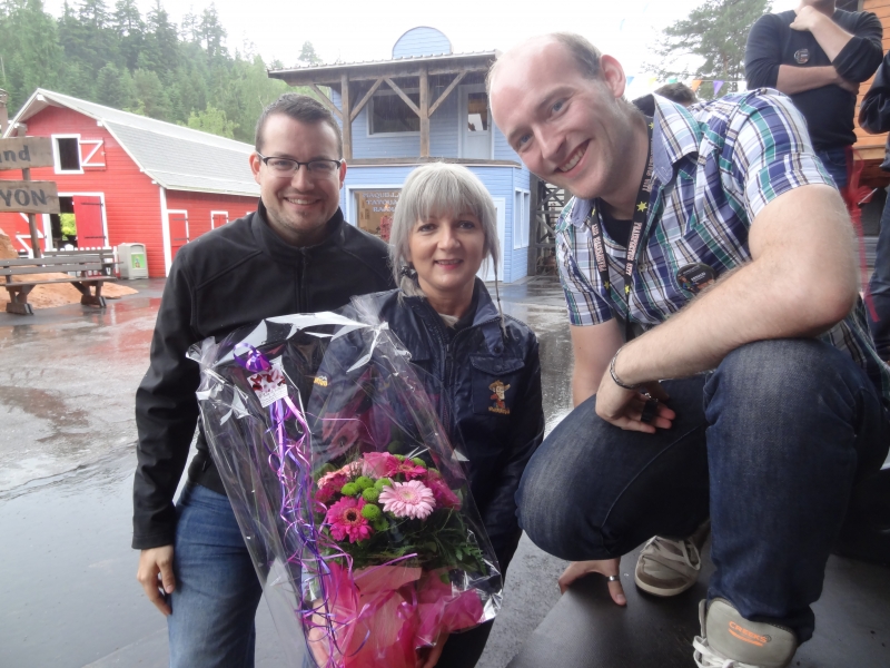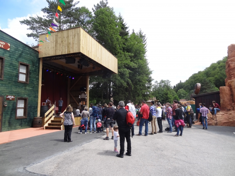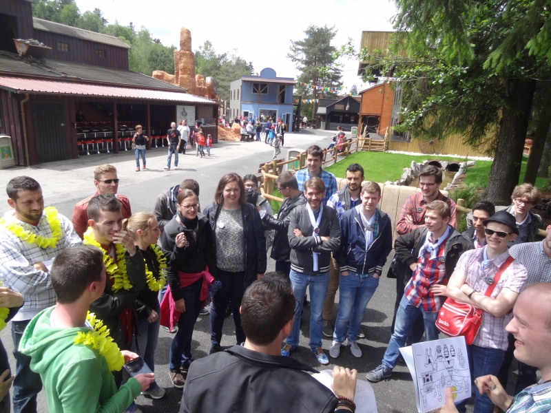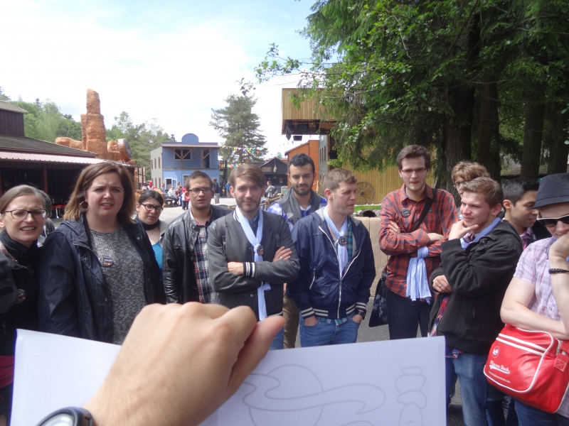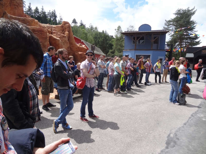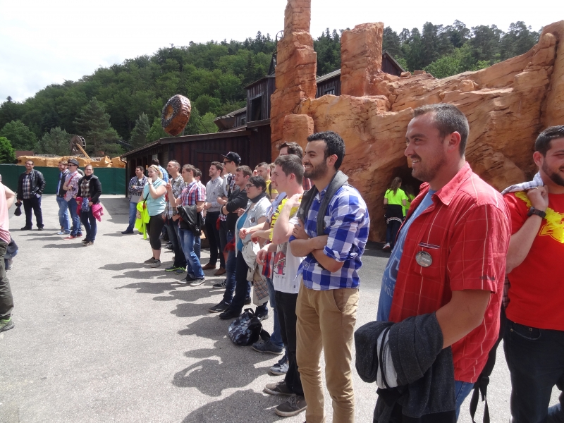 10h00 : Le parc ouvre ses portes. Nous sommes tous accueillis à l’Arizona Pizza par Patrice Fleurent, le directeur du parc. Autour d’un café ou d’un jus d’orange, quelques mots d’introduction pour lancer la journée et distribuer à tous les badges !