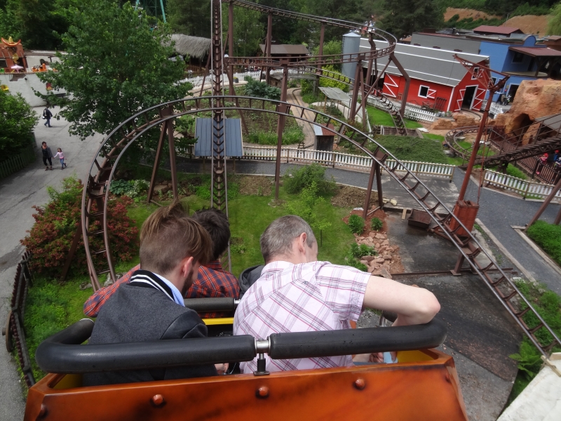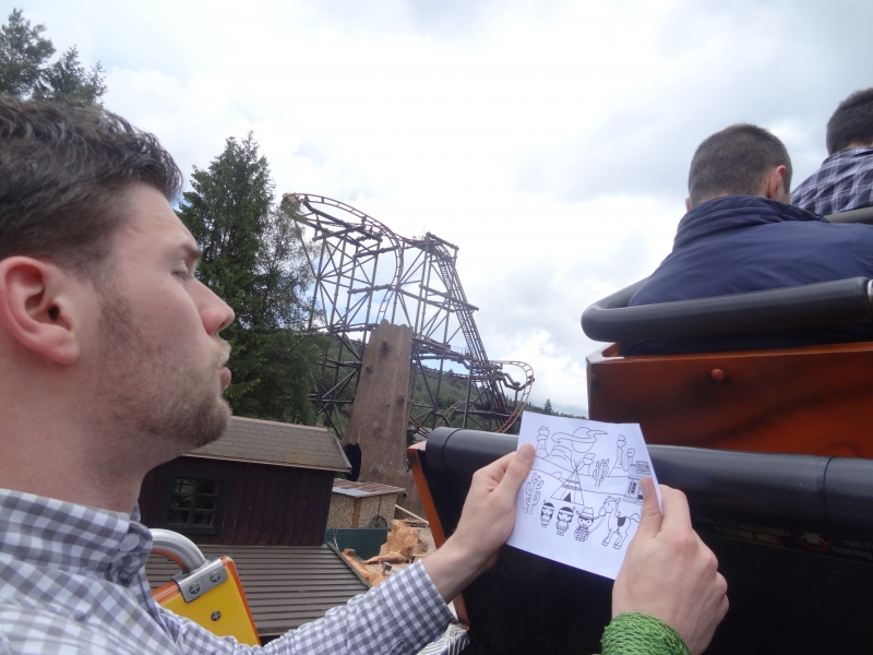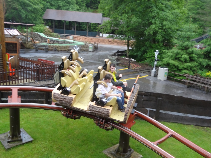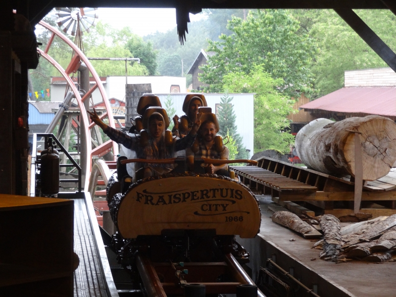 Si le parc est fermé pour la plupart des visiteurs, il ne l’est pas complètement pour nous, puisque M. Fleurent nous accorde un moment privilégié pour faire et refaire Timber Drop en boucle.
