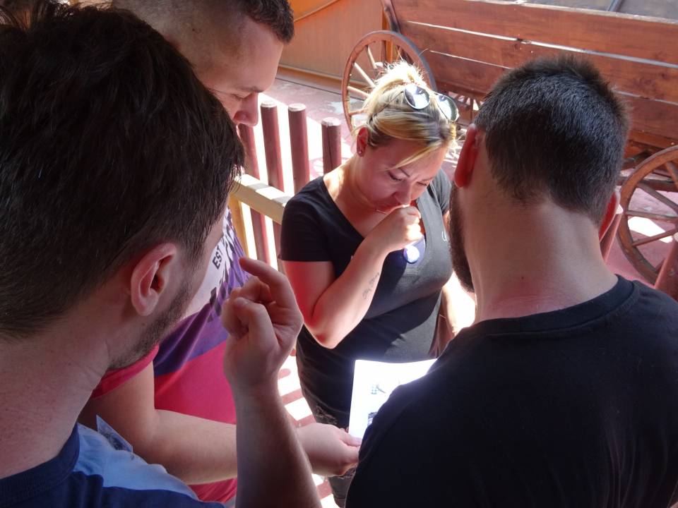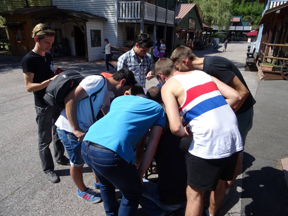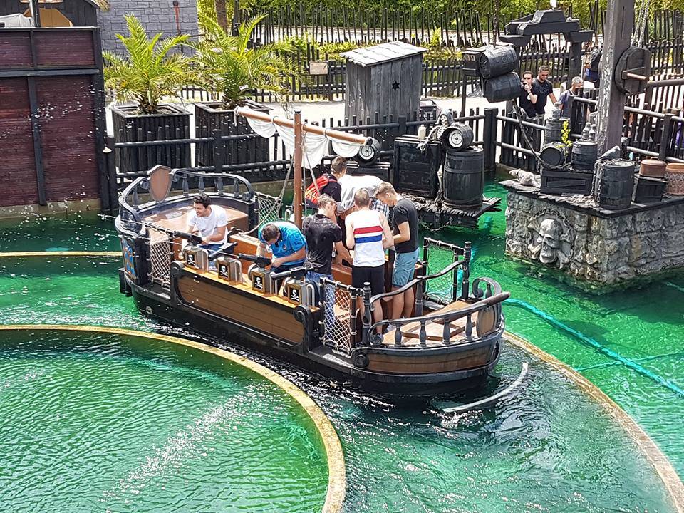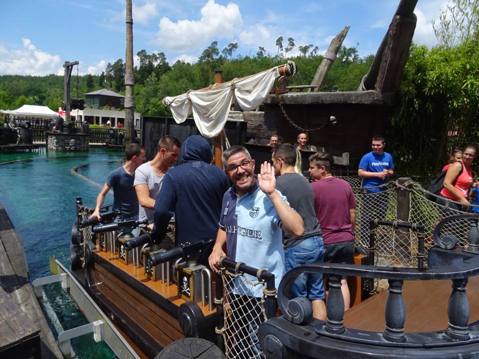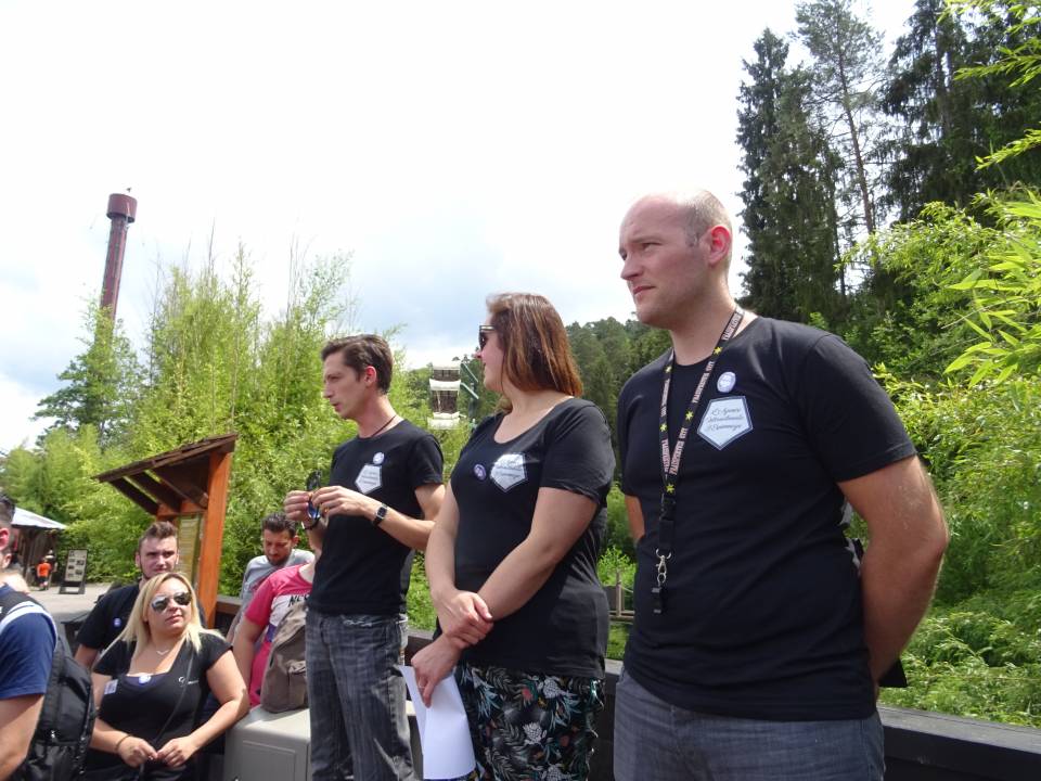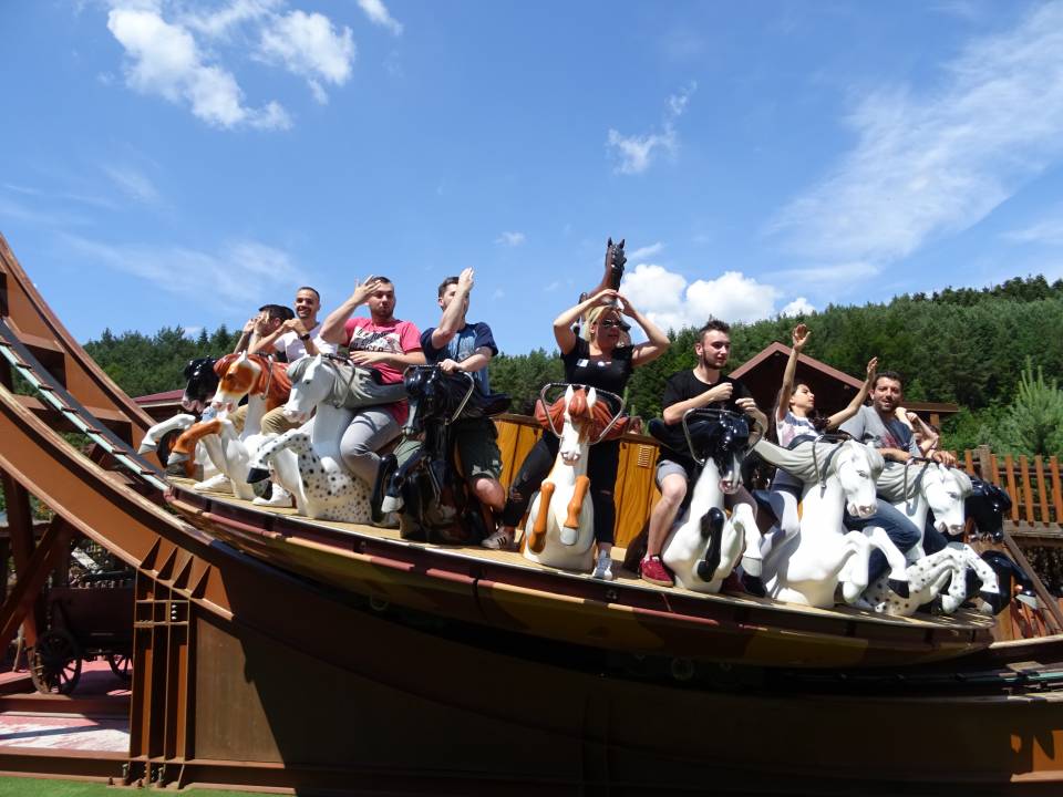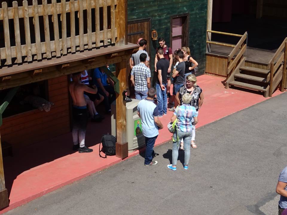 10h00 : le parc ouvre ses portes. Alors que les premiers visiteurs courent vers les attractions, on se dirige vers l’Arizona Pizza pour le petit déjeuner. On y retrouve Patrice Fleurent, le directeur du parc pour un petit mot d’accueil. C’est également le moment de la distribution des badges et de la création des équipes. Chacun tire au sort son badge qui lui indique le nom de son équipe.