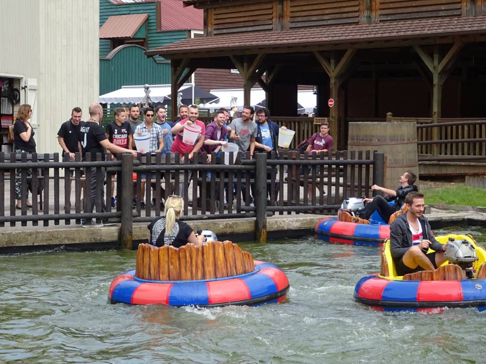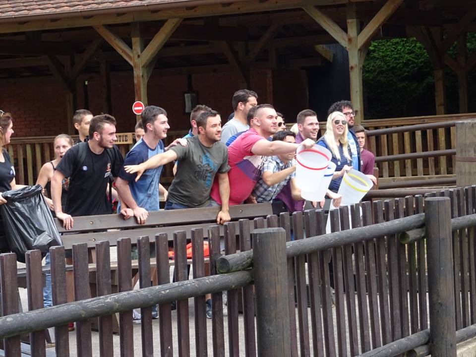 11h00 : Il est temps de tester nos recrues sur notre première épreuve et pour cela, direction les Bumpers. Ce premier jeu visait à tester la précision et coordination de nos agents. Une partie de l’équipe avait pris place dans les Bumpers alors que le reste était posté sur la rive avec un seau. Le but du jeu était de ramasser les boules lancées dans l’eau et de les ramener vers la rive pour les lancer dans le seau de son équipe. Les balles jaunes étaient plus nombreuses mais rapportaient 1 point, alors que les rouges valaient 2 points.
