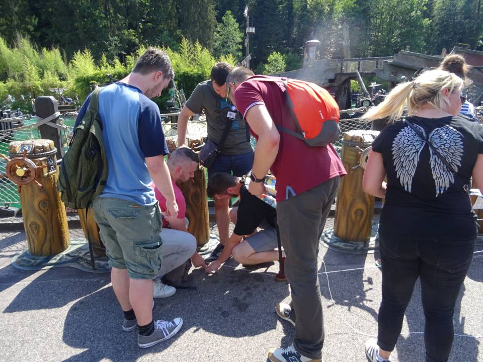 Les équipes se sont alors rendues au Old Time Photo, à la Revanche et aux stands photos de Timber Drop et du Flum. En observant bien, ils y ont découvert un petit coffre avec une étiquette de petit chat, déjà présent sur le premier message et sur le mot laissé au point de rassemblement.