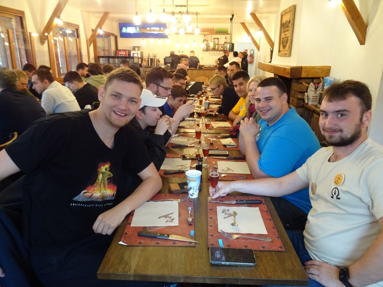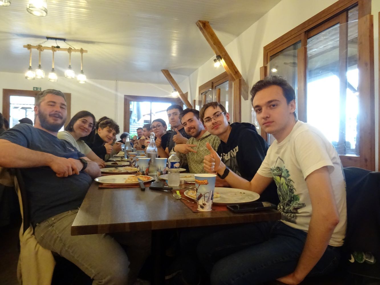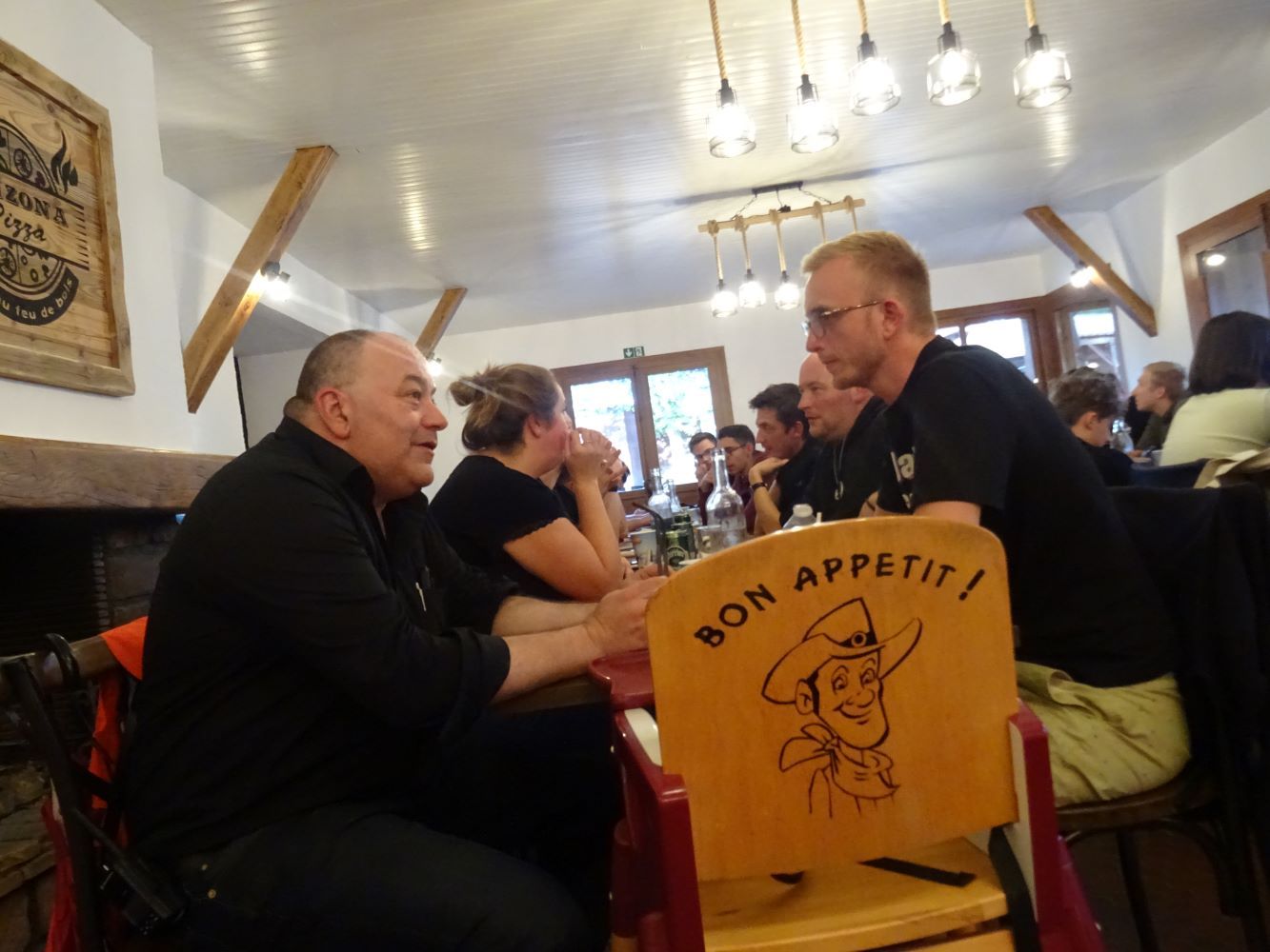 19h00 : Comme le veut la tradition, nous nous retrouvons sur la terrasse de l’Arizona Pizza pour partager une tarte flambée, pour une fois en intérieur pour cause de météo capricieuse.