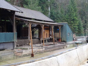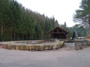 Comme vu précédemment, le vieux crépis a été enlevé de tout le canal et de nombreux arbres ont été abattus. Notamment certains très grands arbres qui devenaient potentiellement dangereux et dont les racines avaient même commencé à faire bouger des tronçons du canal des bûches.