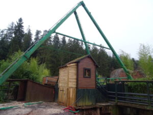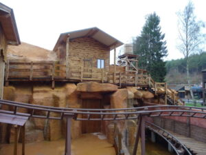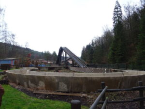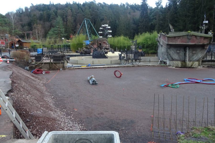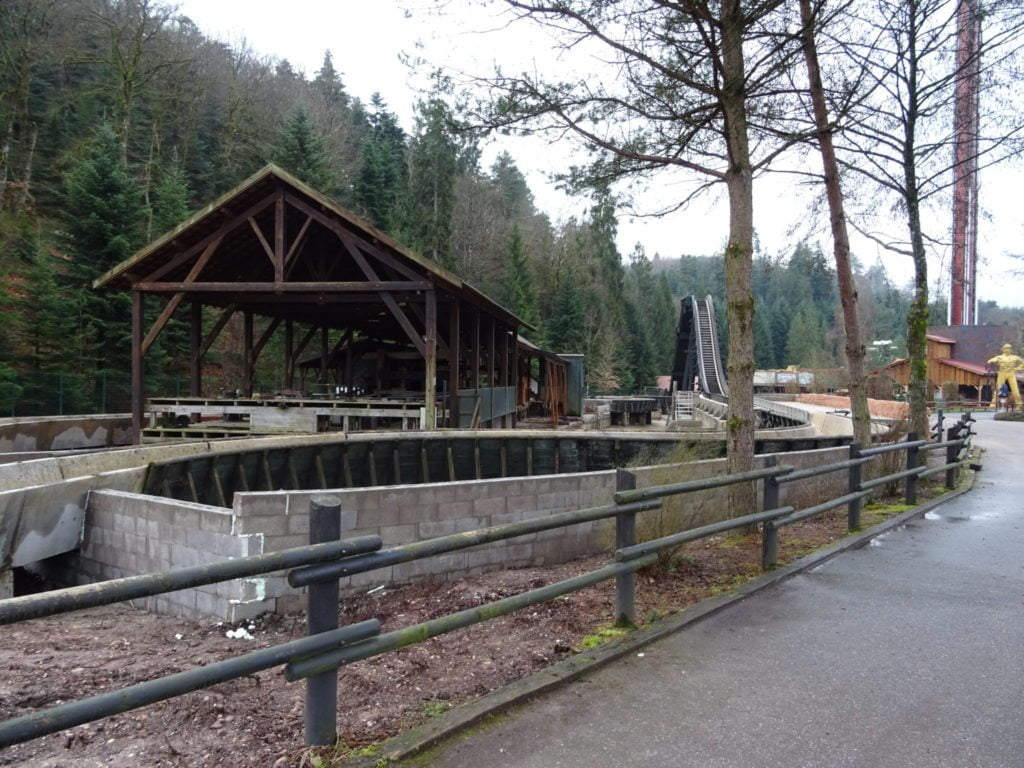 Dans la crique des pirate, un gros travail a lieu actuellement en dehors du parc pour la remise à neuf du Bateau pirate. Les portiques seront repeints, l’armoire électrique complètement revue et la cabine de l’opérateur a pour l’occasion vu une petite extension apparaître.