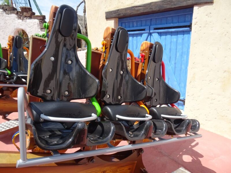 Parmi les éléments qui ont fait choisir ce constructeur, au-delà de la bonne coopération sur les Draisines en 2022, la qualité du matériel proposé, la bonne capacité de l’attraction, les possibilités d’aménagement de la thématique et un nouveau type de siège individuels en fibre de carbone et des lap bars permettant d’espérer un accès à partir de 1,10m accompagné d’un adulte et 1,30 seul.