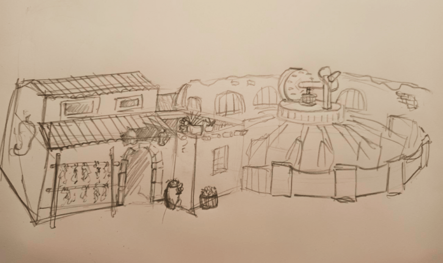 Encore un peu de décoration à venir, dont des piments (comme c’est original). Ceux-ci seront accrochés en guirlandes sur les façades de la file d’attente en s’inspirant du principe des séchoirs de piments.