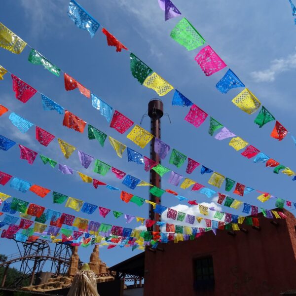 Les équipes du parc ont alors travaillé sur plusieurs pistes thématiques. Une d’entre elles, vite écartée, était sur le thème de la Cucaracha, cette chanson mexicaine parle en fait d’une blatte. Il aurait été amusant d’imaginer les nacelles rebondir pour éviter ou tenter d’écraser les blattes au son de la cucaracha. Mais, pas sûr que les insectes aient trouvé leur public. Une autre idée était de s’inspirer des pinatas. Là encore, le mouvement de haut et bas pouvait évoquer ceux que font les pinatas pendant que les enfants essaient de les attraper. Si l’idée était intéressante, il était là encore compliqué de lui donner corps.