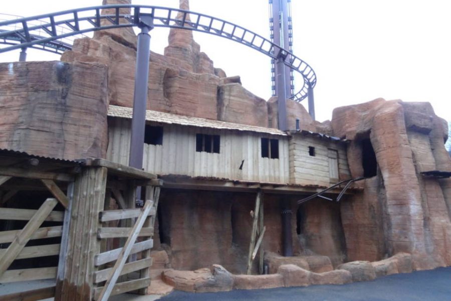 Les équipes du parc continuent de sculpter le béton et les le montage des bâtiments et de la file d’attente.