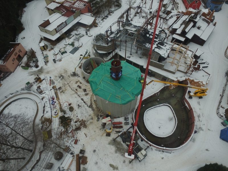 Les équipes du parc continuent de sculpter le béton et les le montage des bâtiments et de la file d’attente.