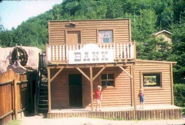 Bien à l’abri derrière les remparts d’un fort, les visiteurs avaient accès à différentes bâtisses typiques d’un western (le saloon, le bureau du shérif avec la prison et une banque) bref, de quoi laisser l’imagination débordante des enfants animer cette aire de jeu à leur façon !