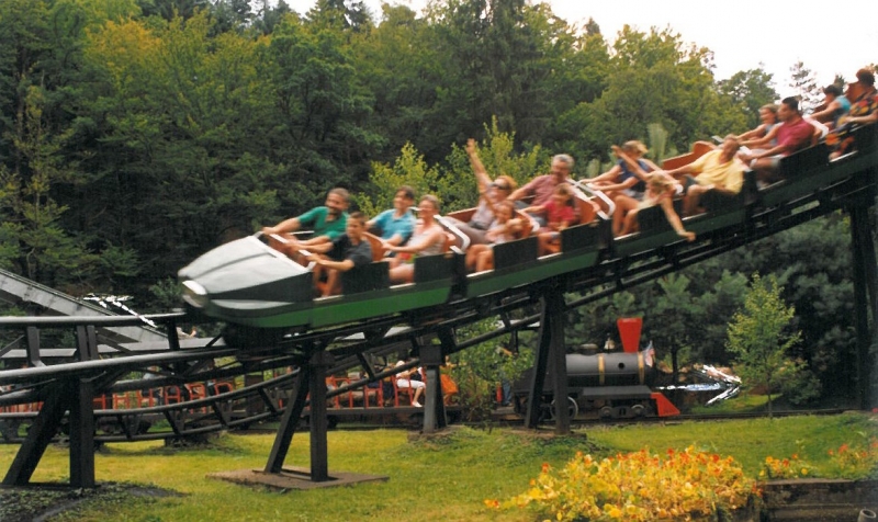 C’est après 17 ans de bons et loyaux services que celui qui fut d’abord baptisé TGV a quitté le parc. Moins rapide que le Grand Canyon, ce fut le premier grand huit du parc. Équipé d’un lift à chaîne, d’un parcours de 270m, les passagers étaient envoyés pour deux tours décoiffant à bord d’un train rutilant.