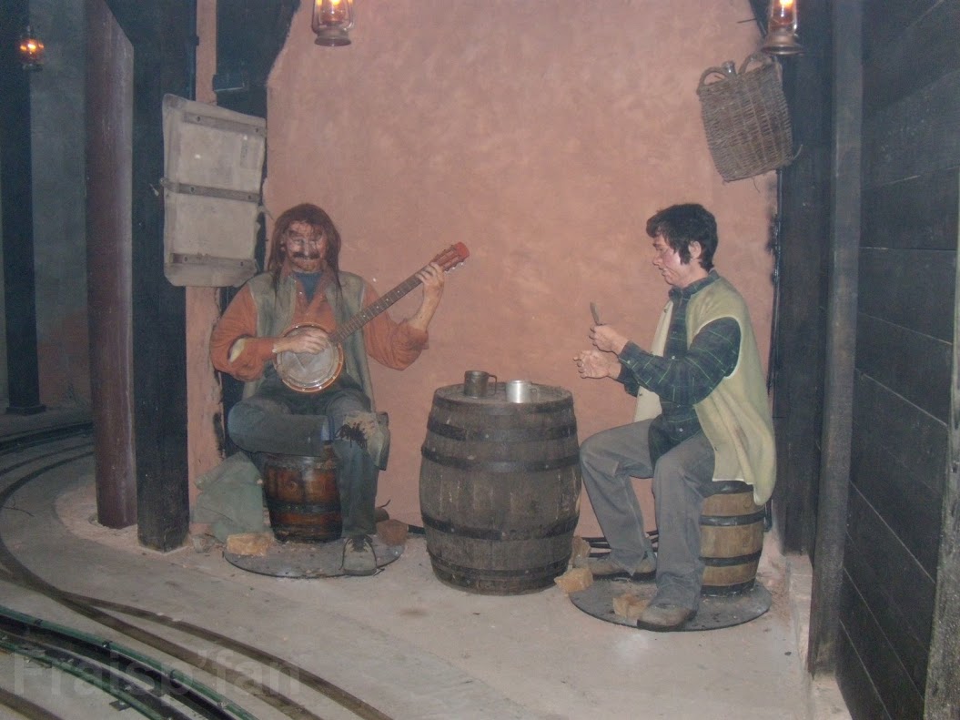 À bord de wagonnets miniers, les visiteurs entraient dans les galeries sombres de la mine d’or. À leurs risques et périls, ils traversaient les galeries rocheuses à la rencontre des mineurs recherchant désespérément fortune.