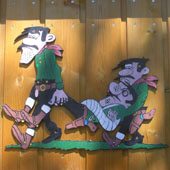 L’une des dernières trace de personnages de la bande dessinée à avoir été observée au parc fut la bande des daltons, placés sur la porte de l’infirmerie du parc.