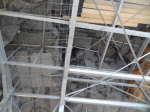 Ce qui est intéressant aussi c’est d’avoir un aperçu de ce que tout cela donne vu d’en dessous, à l’emplacement du futur dark ride. Les contours se dessinent et on comprend de mieux en mieux l’espace restant. Ce n’est pas négligeable même si la multitude de piliers et supports va évidemment corser l’affaire.