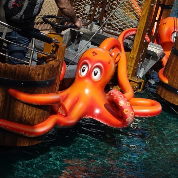 Quand le train Express quitte sa gare, il passe devant une façade de bâtiment qui cache Geyser City. À l’ouverture de cette zone de jeu aquatique, cette façade avait été faite pour prendre l’allure d’un gare. Sur la porte, une ardoise annonçait : « Gare fermée pour cause d’inondations ». Effectivement, juste après être passé par là, le train longeait la zone de Geyser City ou l’eau est omniprésente.