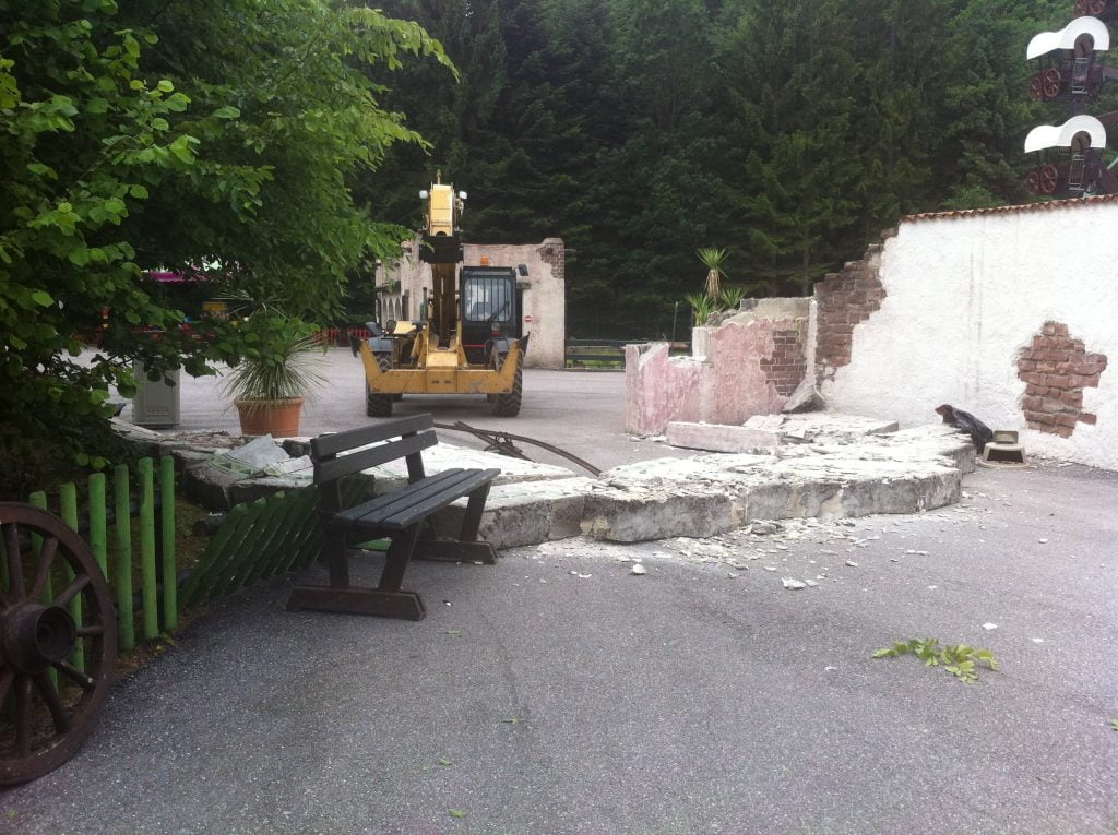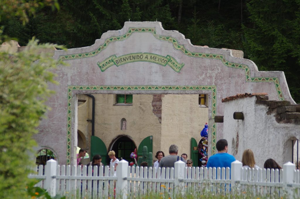 Nous en avions déjà parlé dans l’anecdote #27, mais voici quelques compléments d’informations à propos du porche d’entrée du Mexique. Est-ce que vous aviez remarqué qu’il était déjà dans sa troisième version ! La première version tomba en 1998, la veille de l’ouverture, lors du passage avec la camionnette du parc. La seconde fois en 2012 à cause d’un engin de chantier. Elle sera finalement reconstruite plus solide et plus haute pour la saison 2013.