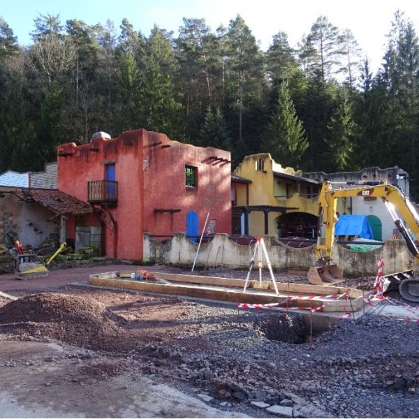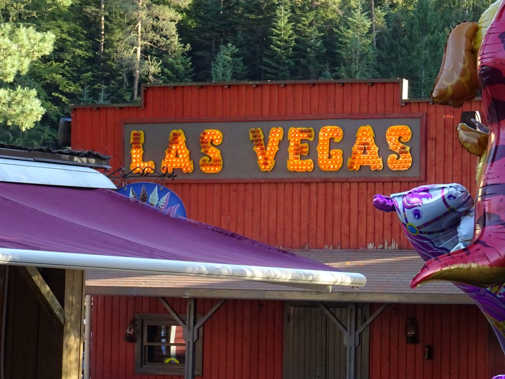 C’est le directeur du parc qui a réalisé la première enseigne LAS VEGAS  en utilisant des cabochons et les lumières achetés d’occasion. Ceux-ci provenaient de l’éclairage d’un ancien manège forain. 10 ans plus tard, l’enseigne a été reconditionnée par les menuisiers du parc. Une nouvelle enseigne a été mise en place depuis.