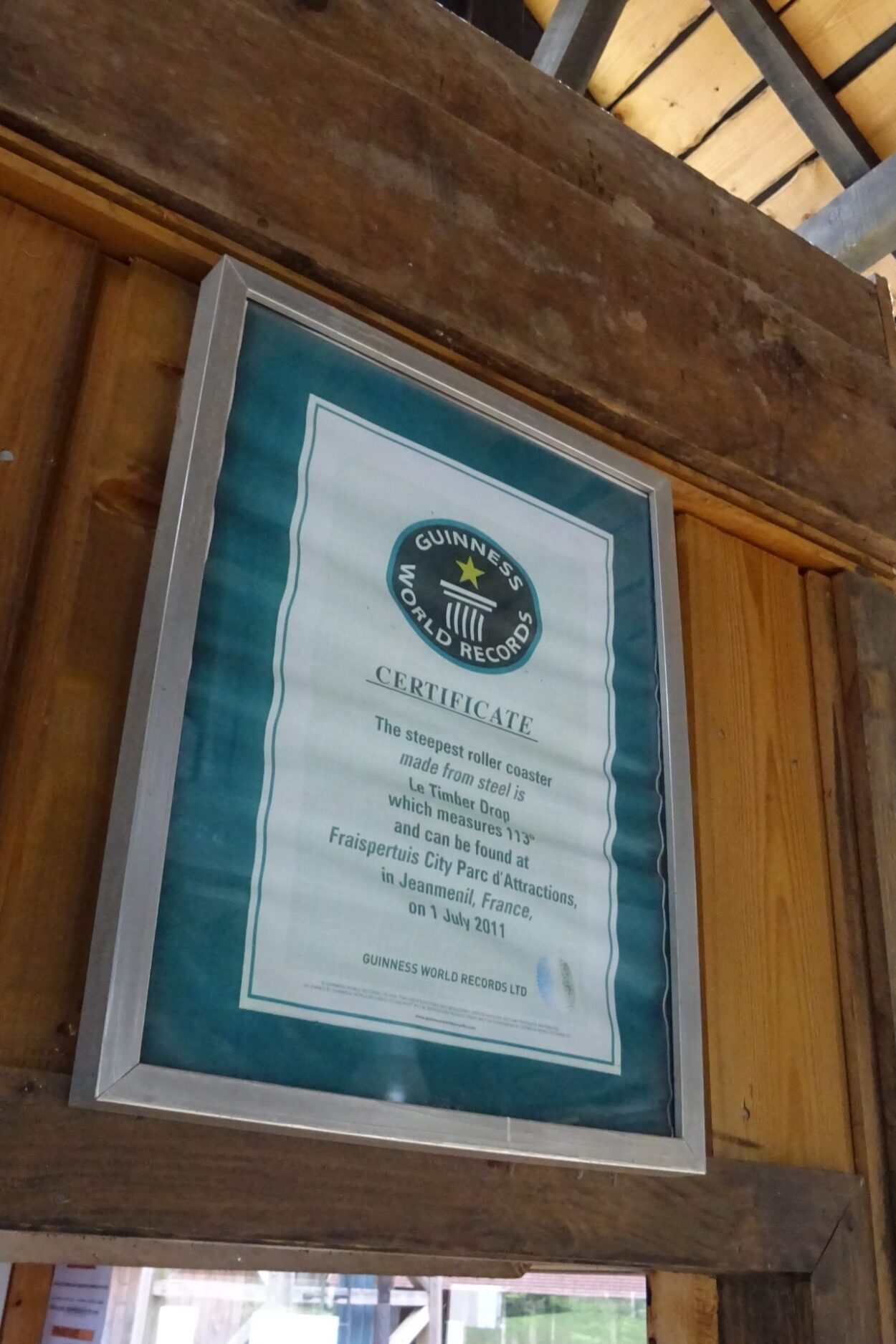 Fraispertuis City a fait parlé de lui en 2011 avec l’ouverture de Timber Drop et la détention d’un record du Monde homologué par le Guinness Book Records. Le parc continue d’afficher dans la gare du coaster une copie du certificat remis le jour de l’inauguration le 1er juillet 2011.