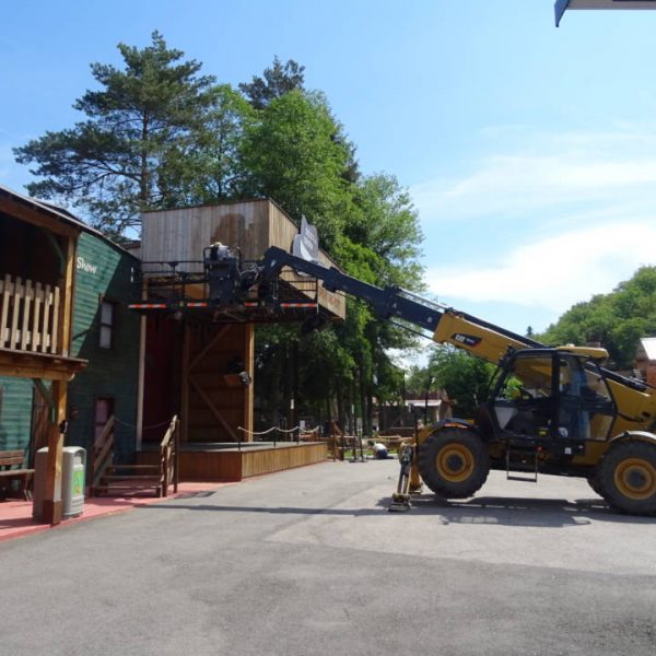 La gare du Flum a été fermé par l’ajout des façades en 2018 pour protéger les visiteurs des courants d’air. Ne trouvez-vous pas que les fenêtres entrent parfaitement dans le thème ? C’est normal, tout comme la grosse scie, elles proviennent de l’ancien Haut-fer. Elles avaient été stockées en attendant de trouver place dans le parc. Voilà chose faite !