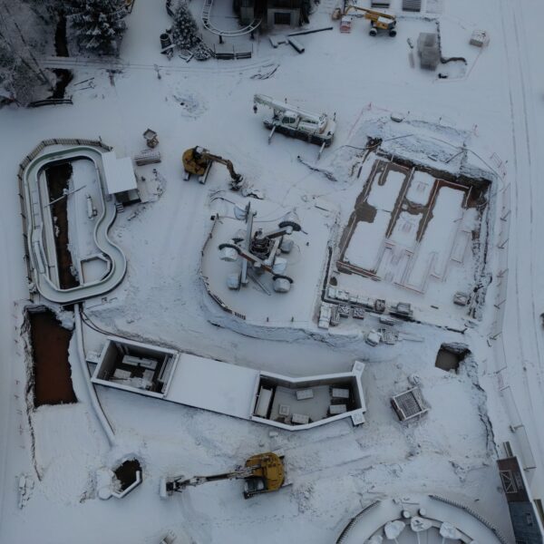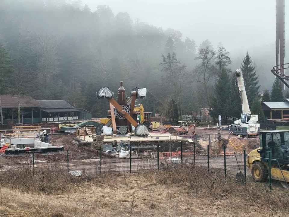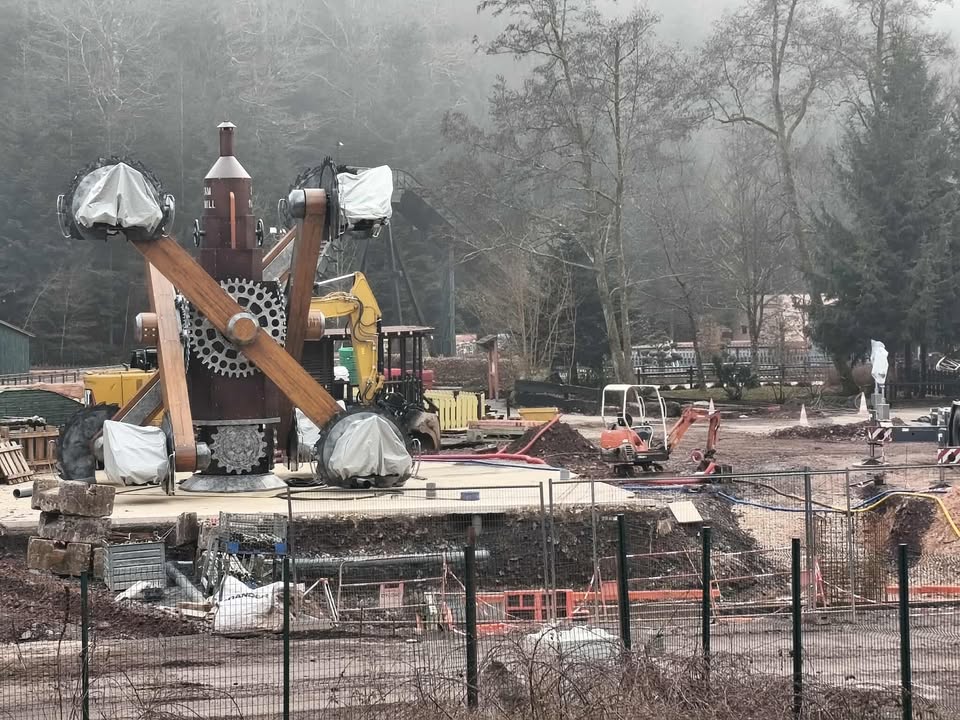 Même si l’épisode neigeux à quelques temps bloqué la progression du chantier en ce début d’année, les travaux continuent avec les fondations de la gare et les massifs des supports du coaster.