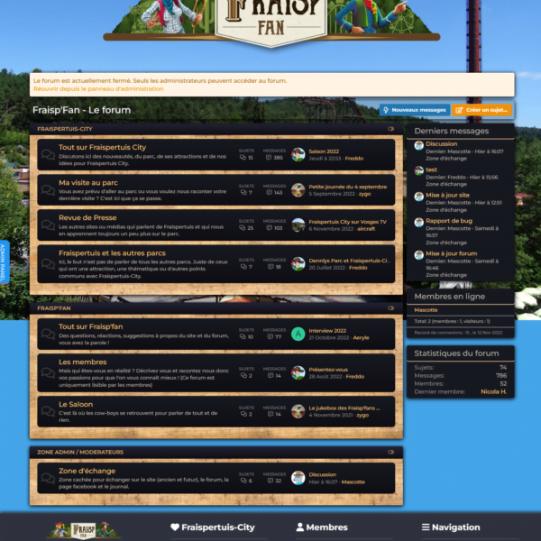 Cette récompense dédiée aux parcs de loisirs français était organisée par Parcs Actus. Un jury de 60 passionnés s’était mis d’accord pour présenter les nommés dans 7 catégories. Fraispertuis-City était nommé dans trois d’entre-elles dont Meilleur parc d’attractions de France (catégorie -1 million de visiteurs), Meilleure nouvelle attraction de France (catégorie – 3 millions d’euros) et Meilleure thématisation d’attraction 2022 en France.