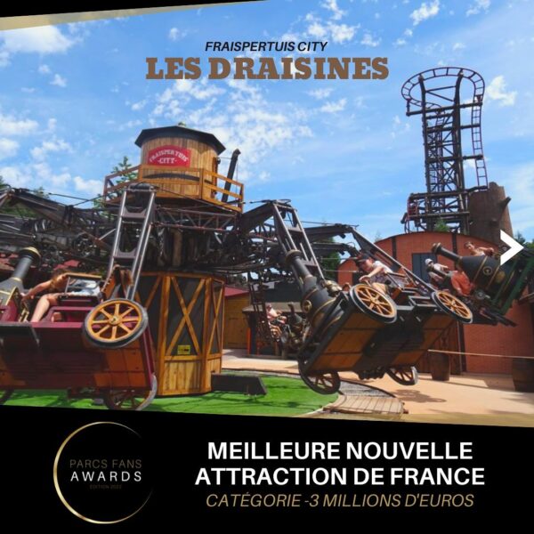 En ce qui concerne Fraispertuis City, le parc remporte le prix de la meilleure attraction de France 2022 (catégorie -3 millions d’euros) pour les Draisines, la nouvelle attraction interactive 2022.
