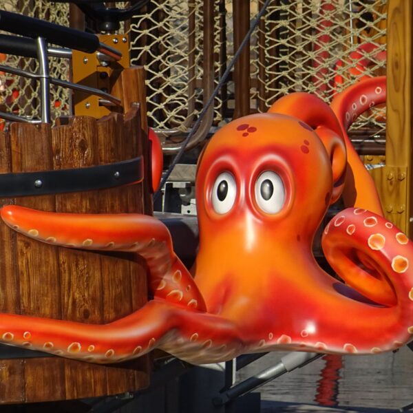 Comme on peut le voir sur les photos, le parc a tenu, encore une fois, à soigner les détails avec des barrières équipées de filets de cordages. On distingue également un double palmier sur l’île et les murs qui entourent la zone ont pris l’aspect de véritables murets de pierre.