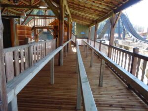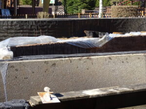 Là aussi, les nouveaux murs formant les nouvelles limites du bassin sont terminés, mais il reste maintenant à habiller tout ça pour le fondre dans le décor. Le remontage du bateau pirate n’est toujours pas fait et le parc attend désespérément quelques jours de temps sec pour la mise en peinture de son armature.