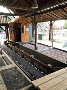 Les efforts se concentrent également cet hiver sur la remise en état du Flum et de ses abord. Les anciens crépis du canal ont été cassé pour faire place à de nouveaux décors fraîchement sculptés par les équipes du parc.
