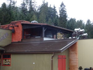 L’agrandissement d’un bâtiment technique a été fait côté Flum et les cheminées des cuisines du Lucky Burger sont en cours d’habillage pour ne pas se faire remarquer.