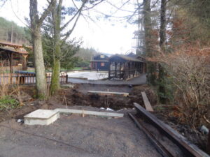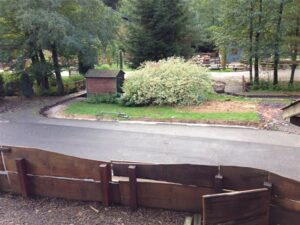 Les castors ont du déjà passer par là, plusieurs arbres ont été supprimés, le terrain a été sondé et aplani pour pouvoir accueillir les sections de rails et la gare de l’attraction. D’autres arbres seront replantés une fois l’attraction mise en place, le parc souhaitant privilégier les résineux dans cette section du parc. Il en est de même pour la zone de la Rivière Castor.