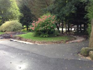 29 mars : Le chemin est élargi et les bordures en granit sont mises en place.