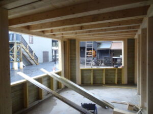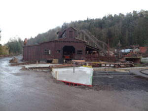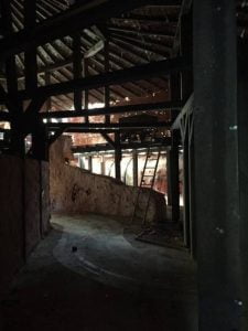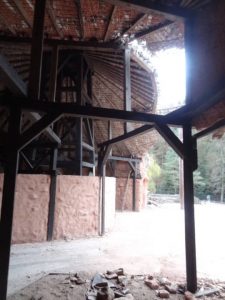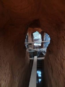 Sur la photo suivante on découvre que le tunnel tournoyant situé à la fin de la mine d’or a été mis à nu. On aperçoit également la charpente en bois qui soutient l’ensemble et qui date de l’agrandissement de la mine d’or dans les années 1990.