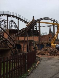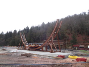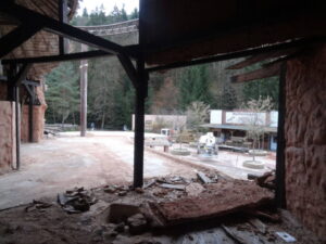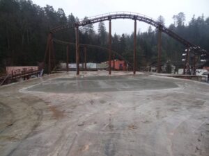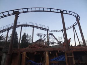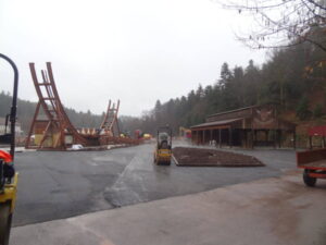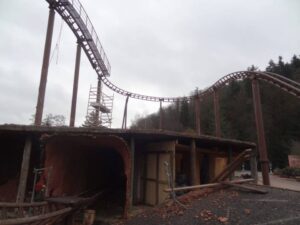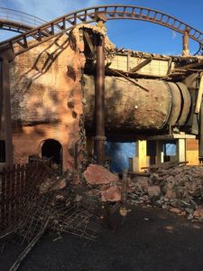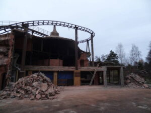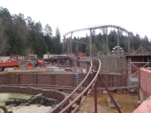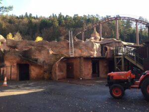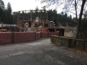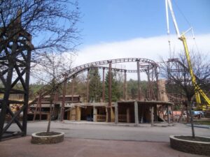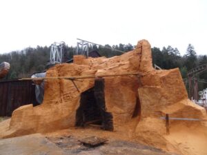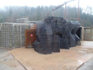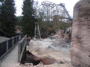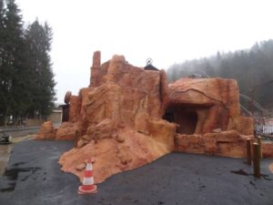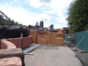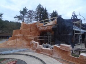 Un gros projet qui est dans les cartons du parc depuis quelques années semble se concrétiser pour 2016 (cf interviews 2011, 2012, 2013, 2014 et 2015). La réfection du grand rocher est en marche puisque la mine d’or a été totalement démontée et qu’une des façades est déjà en cours de démontage.