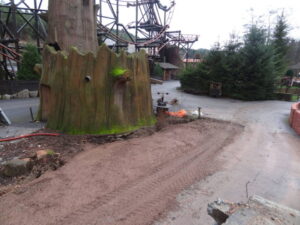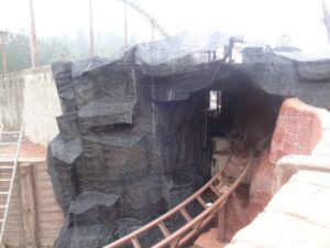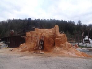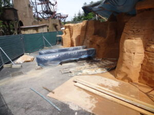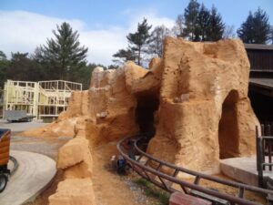 L’entrée de la Mine d’or va être refaite avec un nouveau massif de rocher qui permettra une meilleure identification de l’entrée de l’attraction.