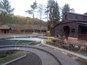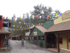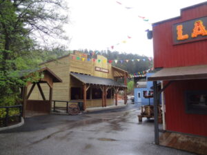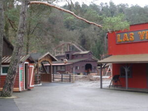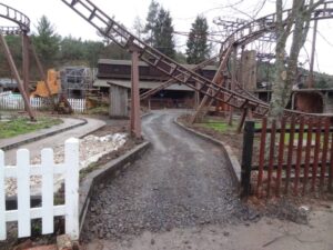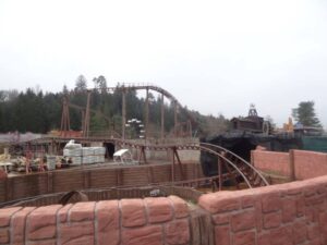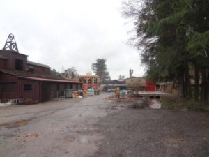 On y découvre l’imposant rocher, agrémenté à certains endroits de baraques en bois. L’entrée potentielle du futur dark ride côté Lucky Burger, la passerelle des freins du Grand Canyon abritée.