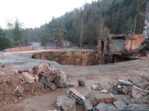L’escalier de la mine d’or et la passerelle en bois ont été supprimés.