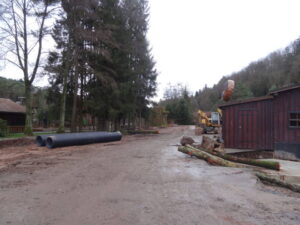 Un autre chantier dans le parc ne passe pas inaperçu, c’est celui qui a lieu derrière les Santiags. Les barrières ont été démontées et les quelques arbres en bordure du parc ont été coupés pour laisser apparaître le parking. Est-ce l’annonce d’un agrandissement du parc ?