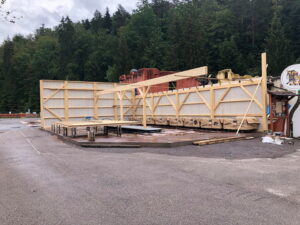 Le bâtiment de la nouvelle attraction Post Office est en cours de montage. L’attraction sera bientôt mise à l’abri.