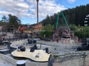 Un petit tour au bateau pirate puisque c’est le deuxième gros chantier du parc cet hiver.