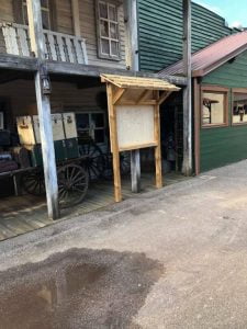 Egalement aperçus près de la menuiserie, des petits auvents qui seront répartis dans le parc et qui serviront à annoncer aux visiteurs le principe de Mission Fraispertuis City, la nouvelle app’traction 2018.