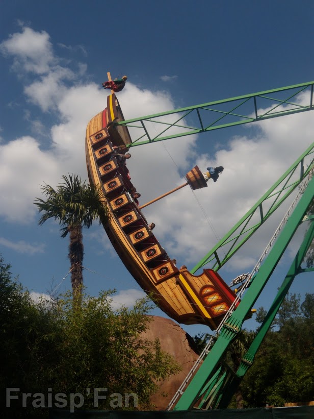 La mer n’est pas aussi calme qu’elle en a l’air à Fraispertuis City ! Si vous montez sur le grand bateau vous vous rendrez bien vite compte que cela ressemble bien plus à une galère qu’à un simple galion ! Votre bateau sera chahuté par des vagues pouvant le projeter jusqu’à 14 mètres de haut !