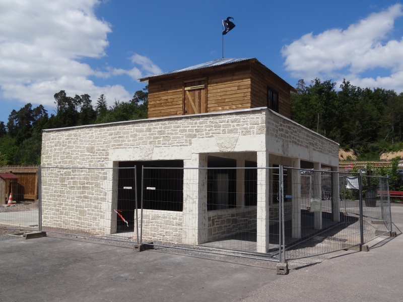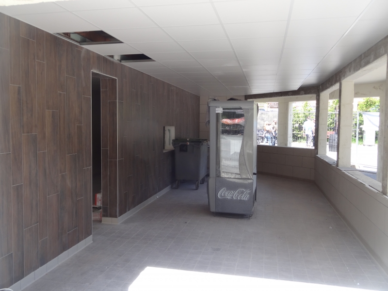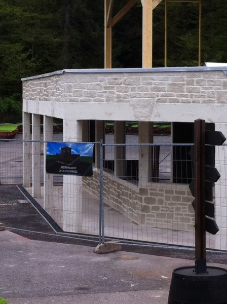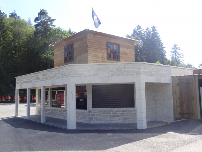 Le kiosque installé en 2009 était fait avec un algeco, le bâtiment a été refait complètement en 2014 à l’occasion des travaux de l’entrée.