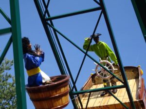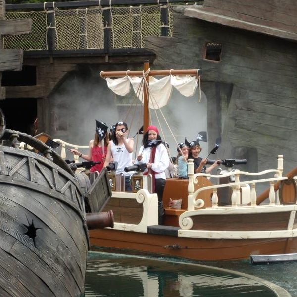Il est comme neuf, les pirates ont repris place à bord et les cannons sont à présent illuminés. Devant l’attraction, le petit chemin a été fini (bordures de granit et macadam) et les bambous ont été plantés. L’impression de vide n’est plus du tout comme lors de mes visites hivernales.