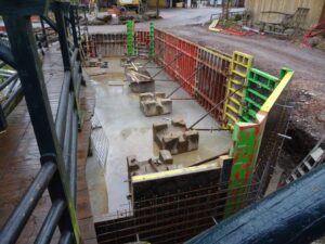 Sur les bords du canal, les étapes de soudure et de pose des filets sont terminées. La projection de béton et sa sculpture devraient débuter en début de semaine prochaine.