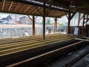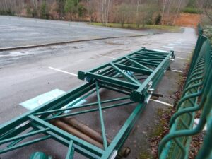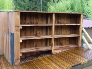 Une petite photo des nouvelles étagères pour mettre à l’abris vos sacs et les supports du bateau pirate qui reviennent de la mise en peinture et où l’on découvre la nouvelle couleur (vert plus sombre) dans laquelle sera également peinte l’armature principale.